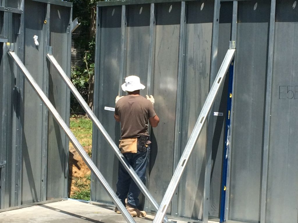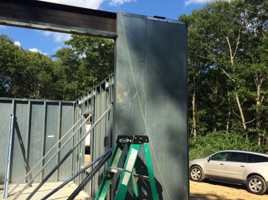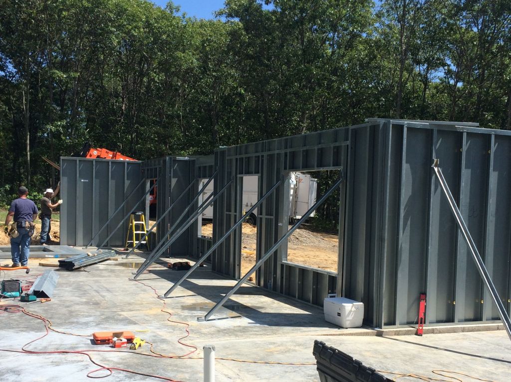 While lead crew sets panels, 2nd crew adds supplemental bracing